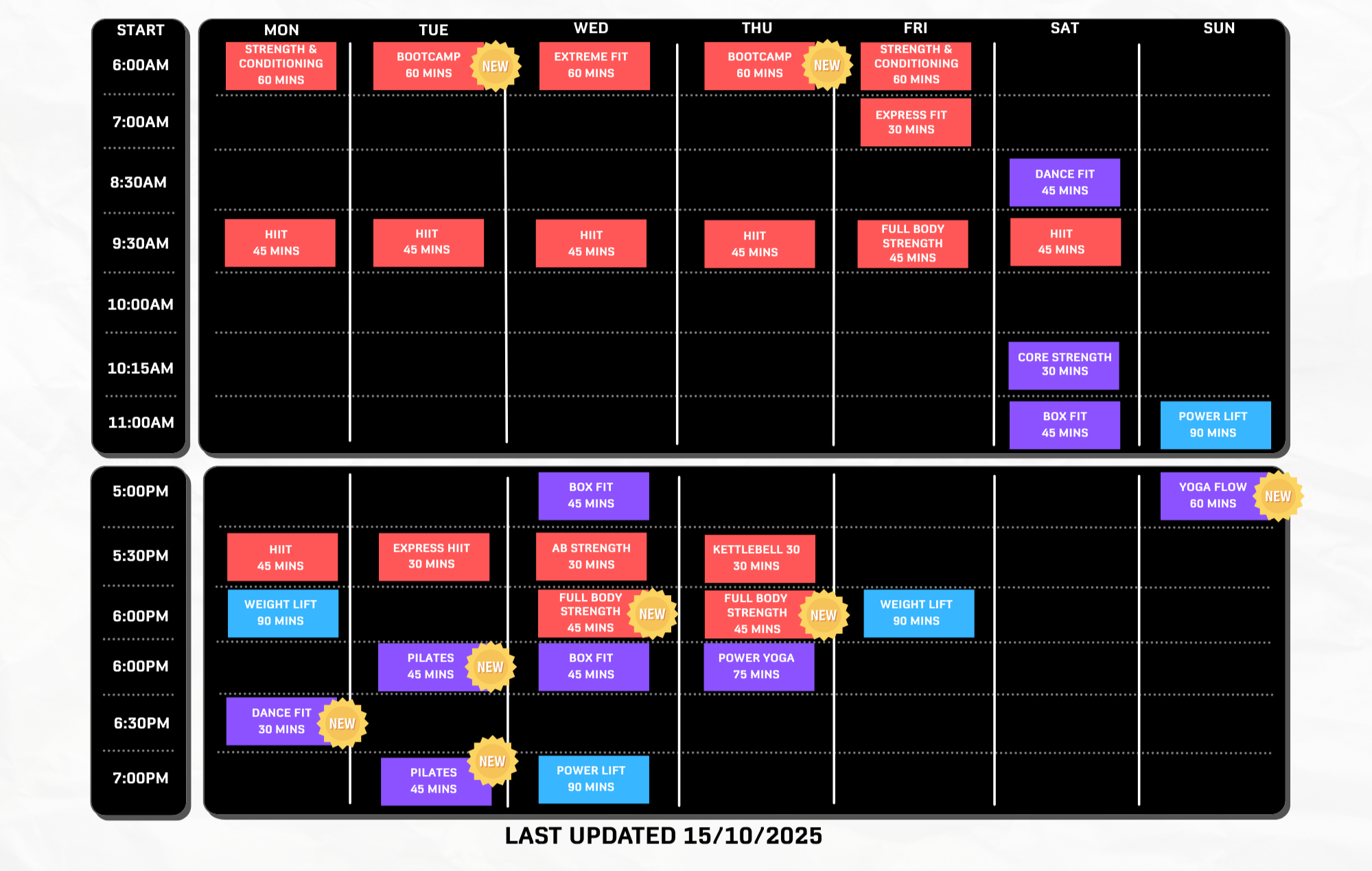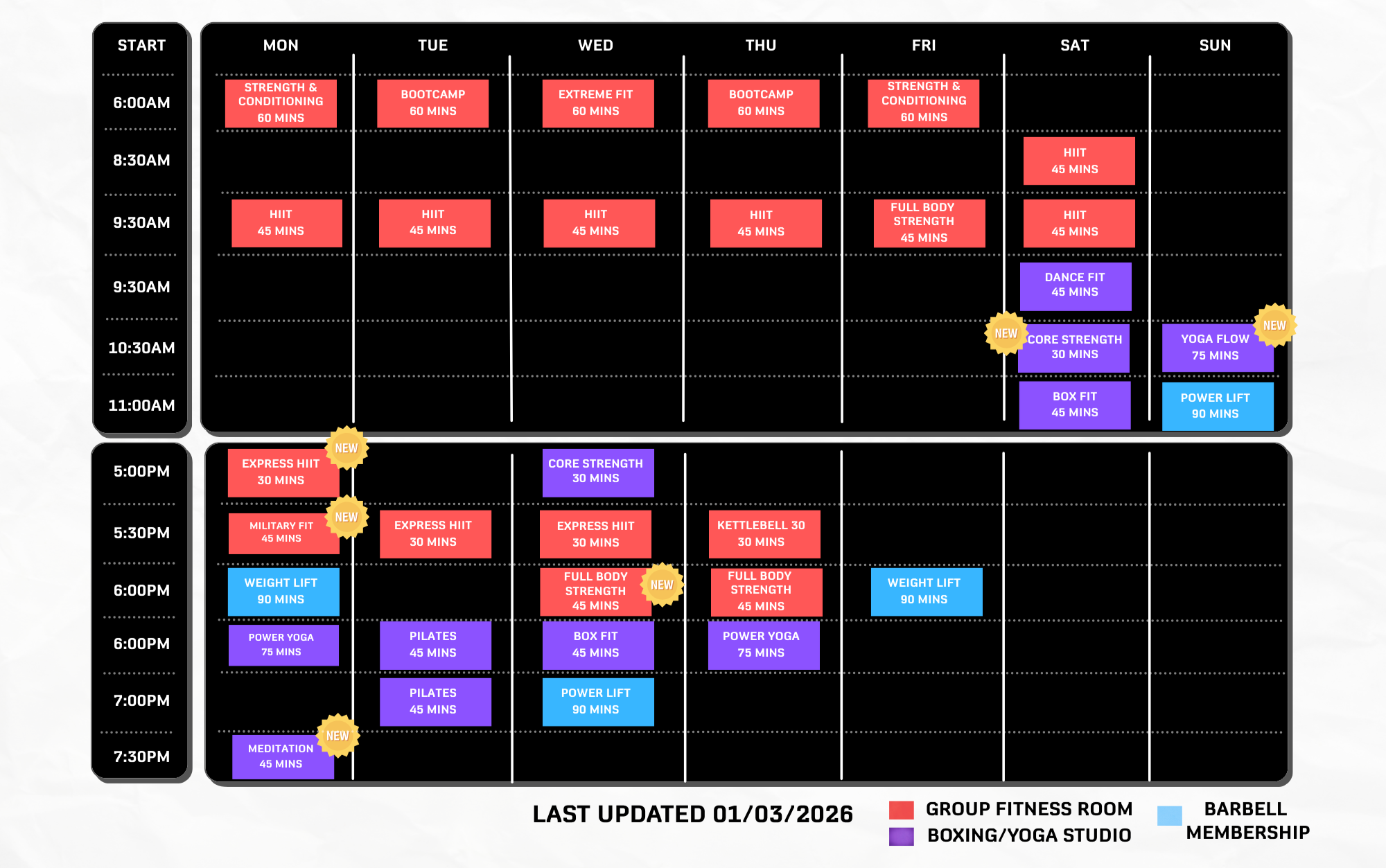Most classes such as HIIT and BB Fit are actually very similar. However, times and instructors are different due to location and class popularity.