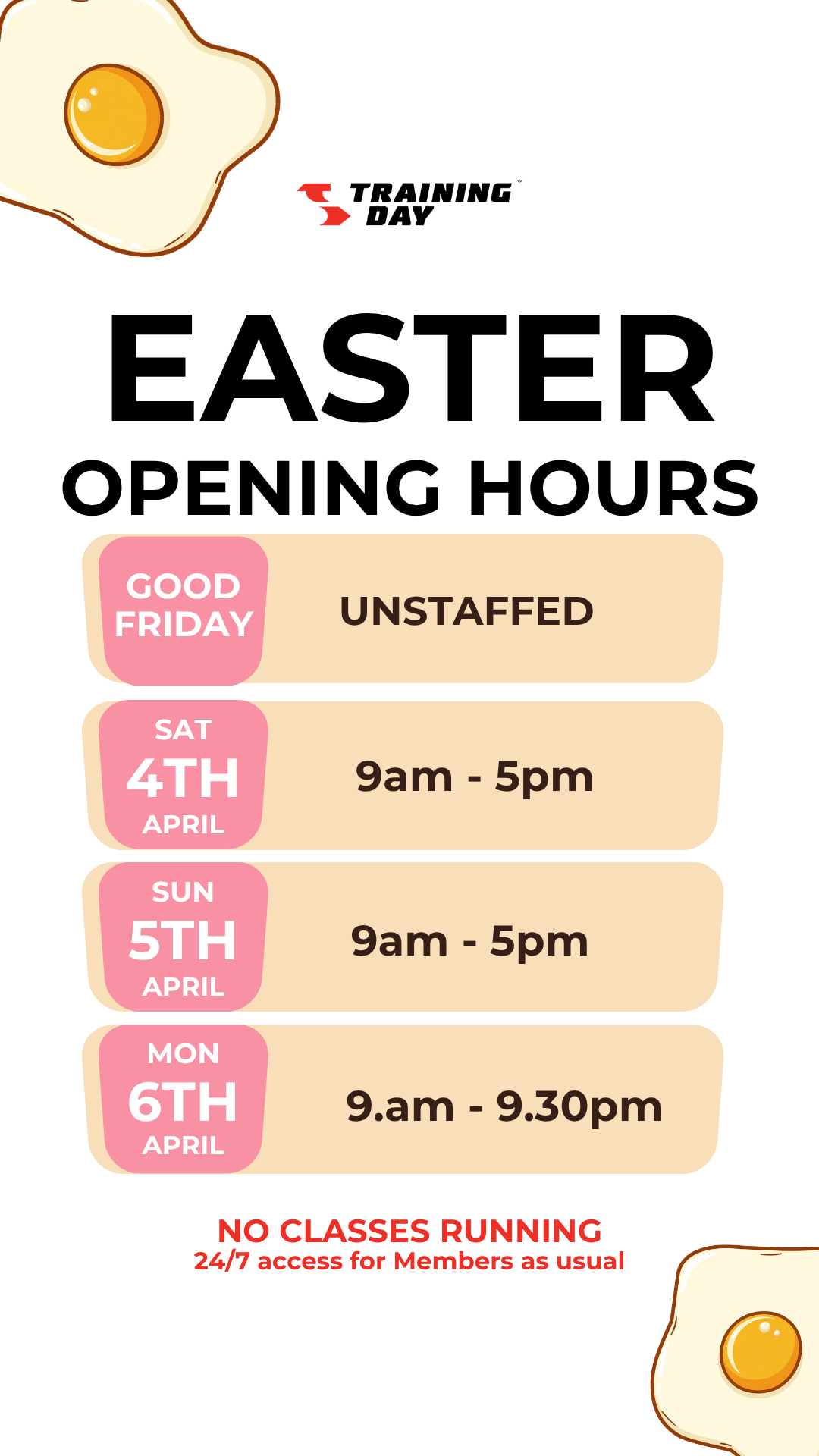 Easter at Training Day Gym: Events & Opening Hours